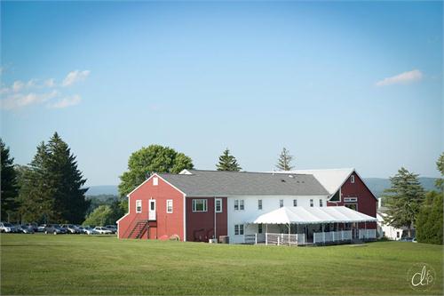 The interior of the Red Barn during a wedding.